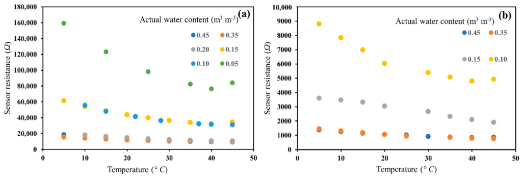 - Temperature-resistance relationship: Higher temperatures reduce sensor resistance, causing readings to appear wetter than actual soil moisture; lower temperatures increase resistance, producing drier readings.